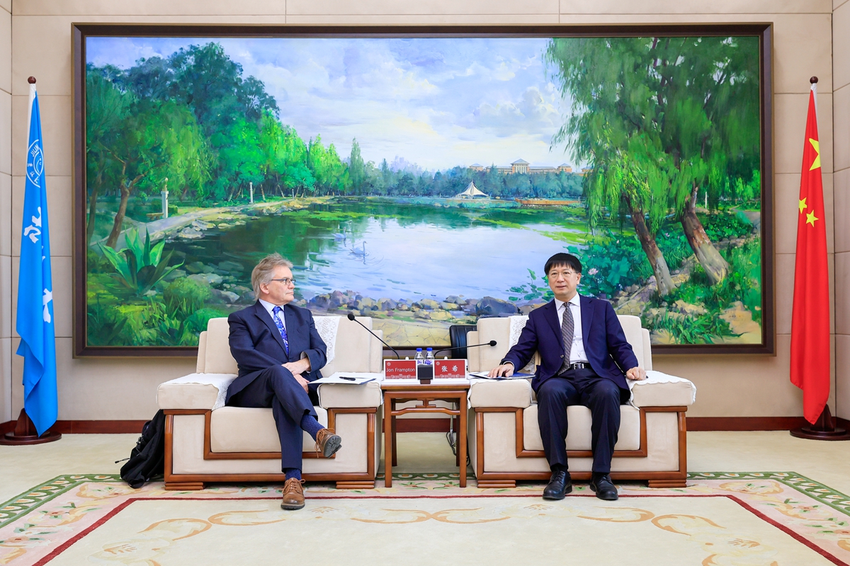 张希对乔·弗兰普顿一行的到访表示欢迎,并对伯明翰大学长期以来在人才培养方面给予的支持表示感谢。他简要介绍了吉林大学的基本情况,表示两校在地学领域的合作有着深厚的历史渊源。中国地质学奠基人李四光先生作为伯明翰大学培养的杰出校友,为长春地质学院的创立和发展做出了重要贡献,为吉林大学地学学科的发展奠定了重要基础,成为连接两校学术交流的重要纽带。吉林大学地学学科特色鲜明,建有深部探测与成像全国重点实验室等高水平科研平台,学校在高压物理、高压化学、高压材料等交叉领域具备显著优势,为双方进一步深化合作提供了有力支撑。张希表示,大学如今被赋予很多功能,但归根结底是人才培养。近年来,学校不断加强师资队伍建设,以一流师资培养一流人才,同时高度重视国内外交流与合作,通过高水平科研实践和广泛学术交流,不断拓宽师生视野,培养学生懂交流、善合作的能力。期待双方未来进一步推动师生互访与项目共建,为青年师生创造更多交流合作机会。